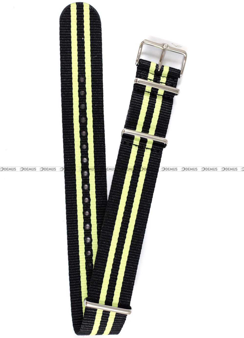 Czarny pasek nylonowy Vostok Europe Rocket N1 6S21-2255253 o szerokości 22 mm to jednoczęściowy, przekładany pasek typu NATO, zaprojektowany z myślą o użytkownikach ceniących trwałość i funkcjonalność. Wykonany z wytrzymałego nylonu, charakteryzuje się odpornością na wilgoć i uszkodzenia mechaniczne, co czyni go idealnym wyborem dla osób prowadzących aktywny tryb życia. Kontrastowe limonkowe paski dodają mu dynamicznego wyglądu, podkreślając sportowy charakter zegarka.