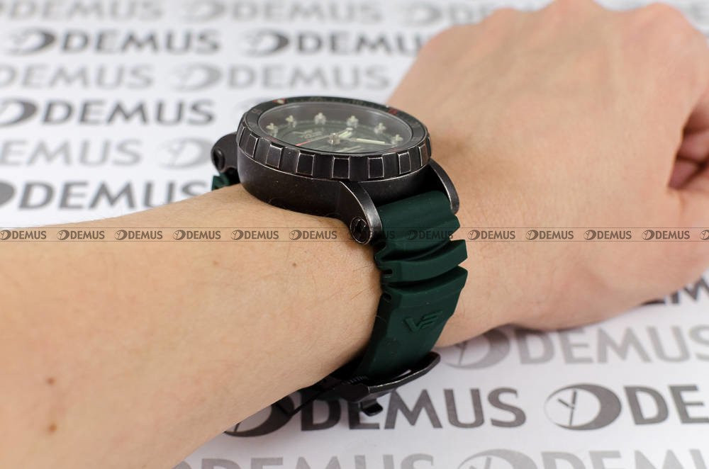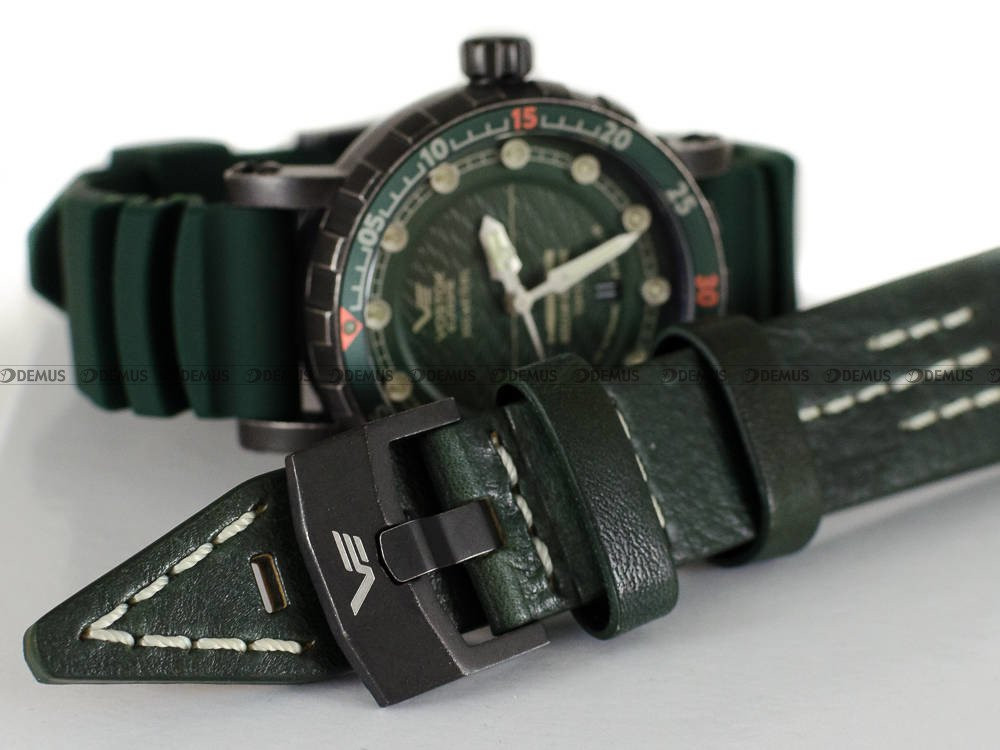 - Dwa paski w zestawie – zielony silikonowy i zielona postarzana skóra, pozwalające dopasować zegarek do okazji.