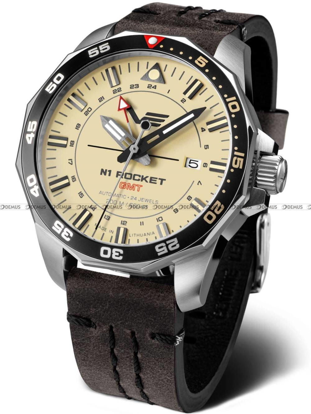 Vostok Europe Rocket N1 NH34-225A713 to elegancki zegarek inspirowany inżynierską precyzją i wytrzymałością konstrukcji rakietowych. Jego srebrna koperta o szerokości 46 mm i grubości 17 mm wykonana jest ze stali nierdzewnej, co zapewnia trwałość i odporność na uszkodzenia. Kremowa tarcza dodaje mu ponadczasowej elegancji, a brązowy skórzany pasek podkreśla klasyczny charakter. Dzięki funkcji GMT, umożliwiającej śledzenie dwóch stref czasowych jednocześnie, zegarek jest doskonałym wyborem dla podróżników i osób pracujących w międzynarodowym środowisku. Datownik zwiększa praktyczność zegarka, a zakręcana koronka i dekiel gwarantują dodatkowe uszczelnienie, które w połączeniu z WR200 sprawia, że zegarek jest odporny na wodę i gotowy do nurkowania na niewielkie głębokości.