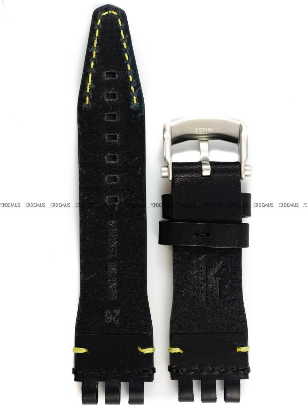 Pasek skórzany do zegarka Vostok Europe Energia NH34-575A718 – czarny gładki z jasnym zielonym przeszyciem, 20 mm