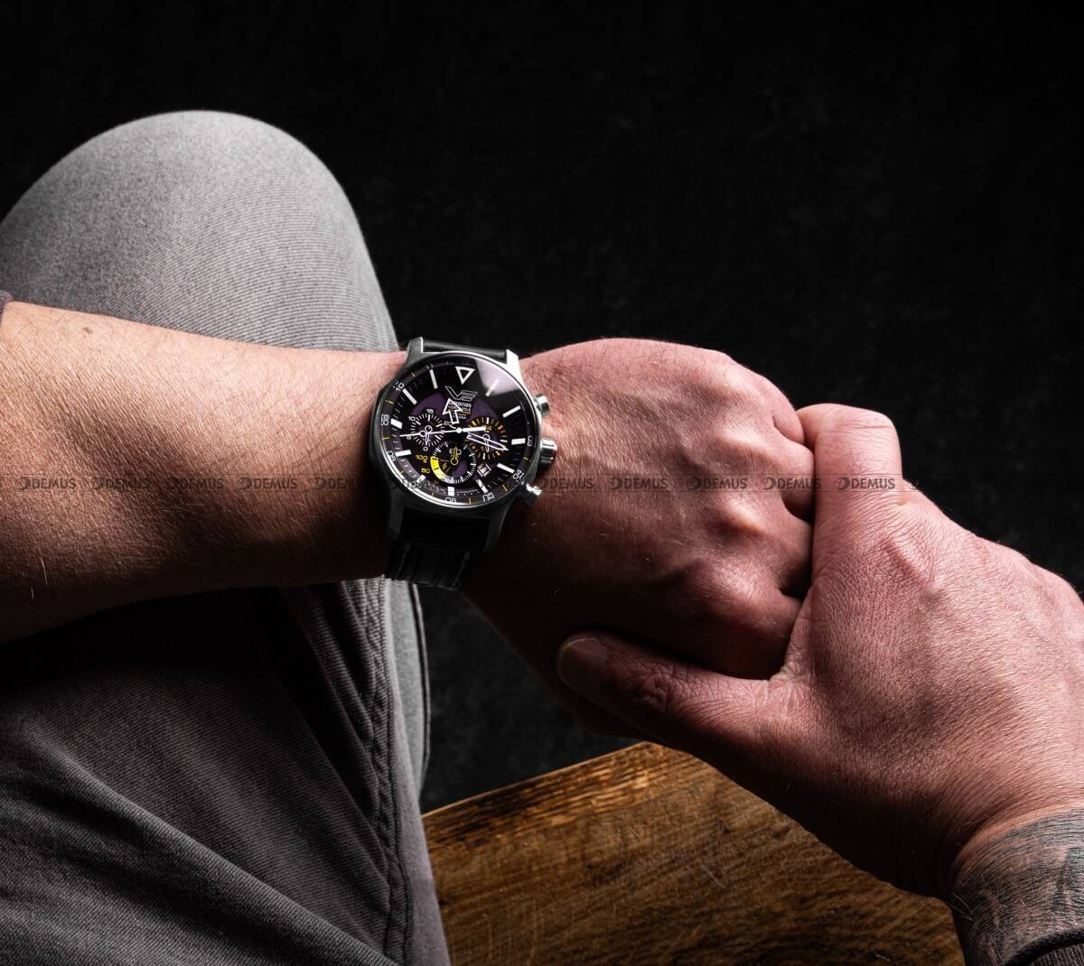 Vostok Europe Expedition North Pole "Polar Poppy" VR42-595A732B to wyjątkowy zegarek męski stworzony z myślą o entuzjastach ekstremalnych przygód i niezawodności w trudnych warunkach. Ten model wyróżnia się czarno-fioletową tarczą z żółtymi akcentami, nadającymi mu dynamicznego charakteru. W zestawie znajdują się trzy wymienne paski: stalowa bransoleta, czarny skórzany pasek oraz czarny silikonowy pasek, co pozwala na łatwą personalizację zegarka w zależności od okazji i preferencji użytkownika.