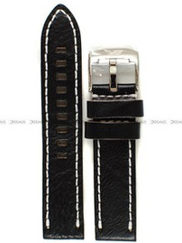 Pasek skórzany do zegarka Vostok Europe Almaz - 22 mm czarny z białą nicią