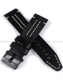 Pasek skórzany czarny z beżową nicią do zegarka Vostok Europe Ekranoplan 2 6S21-546C512 - 25 mm